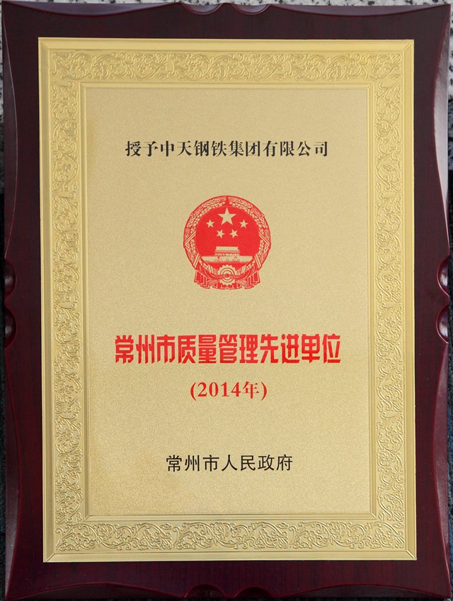 “常州市质量管理先进单位”奖牌