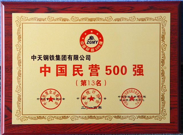 “中国民营企业500强”第13名奖牌
