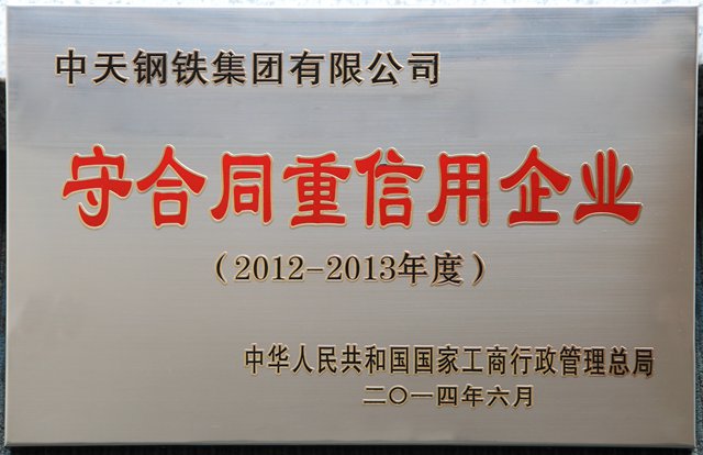 2012-2013年度守合同重信用企业奖牌