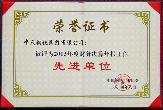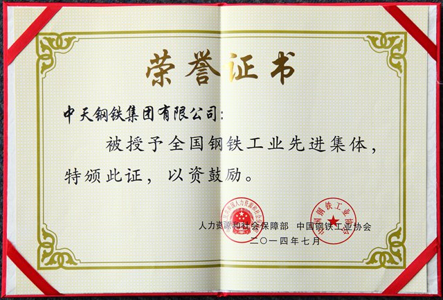 全国钢铁工业先进集体证书