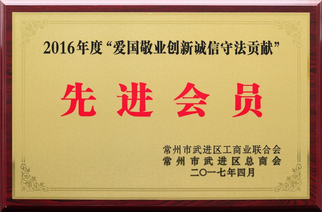 2016年度“爱国敬业创新诚信守法贡献”先进会员
