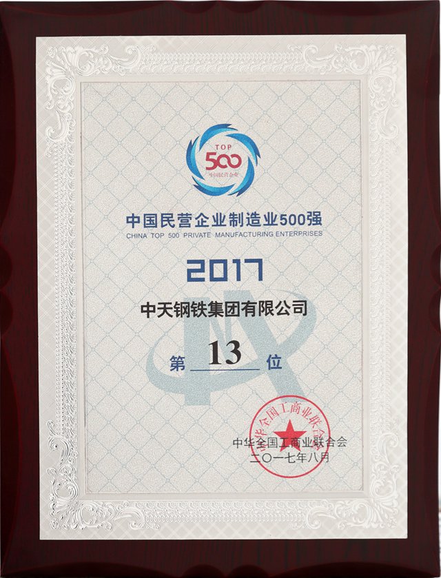中国民营企业制造业500强第13位