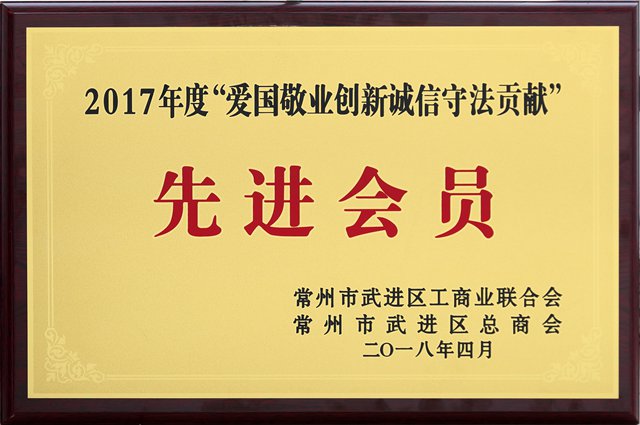 2017年度“爱国敬业创新诚信守法贡献”先进会员