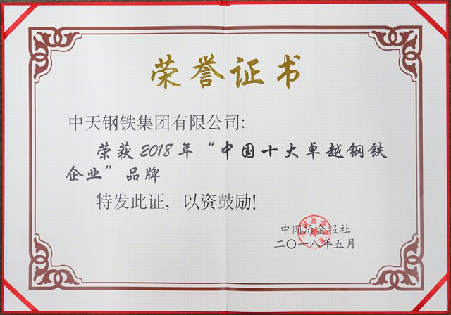 世界杯网站网页荣获2018年“中国十大卓越钢铁企业”品牌